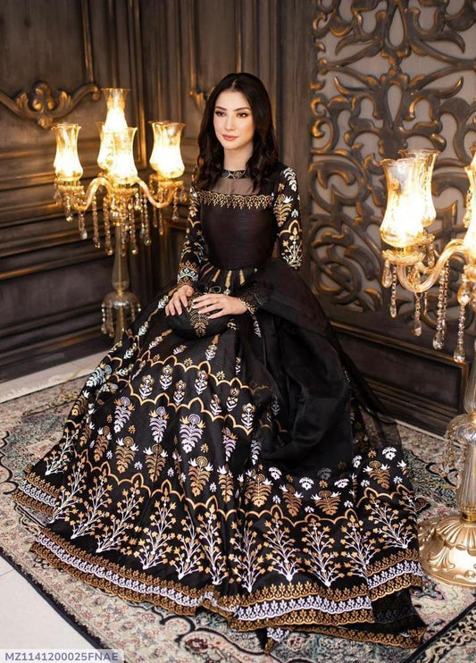 3 pcs women's stitched shamoz silk embriodered Maxi